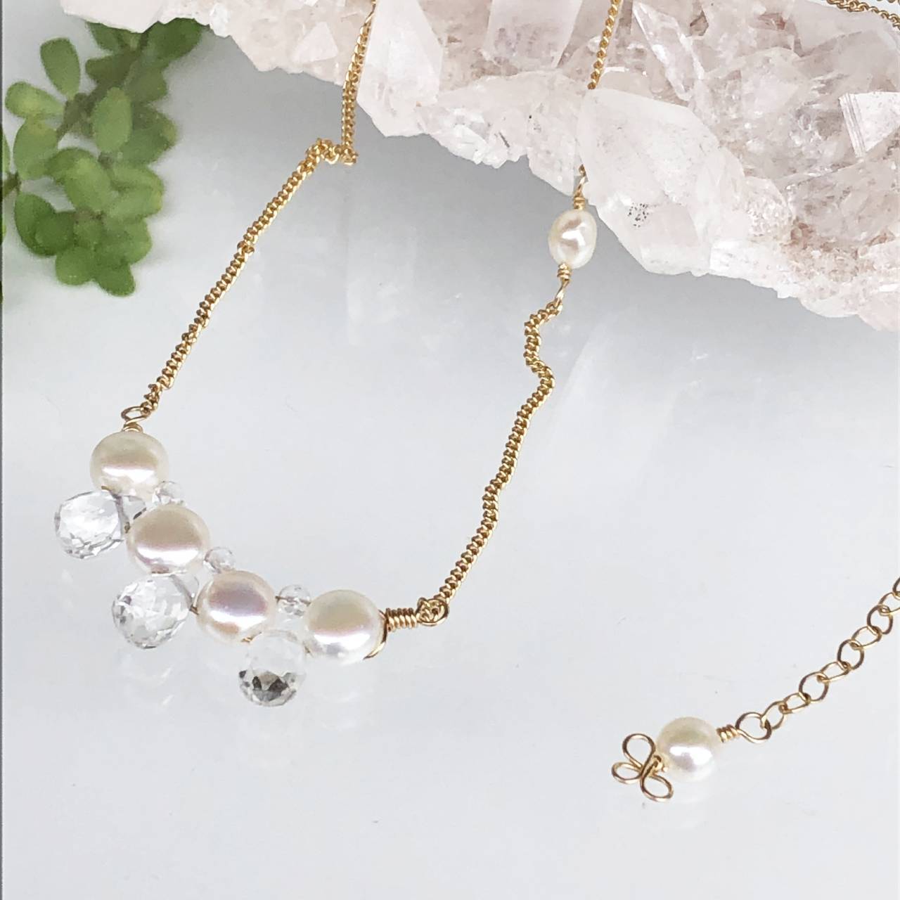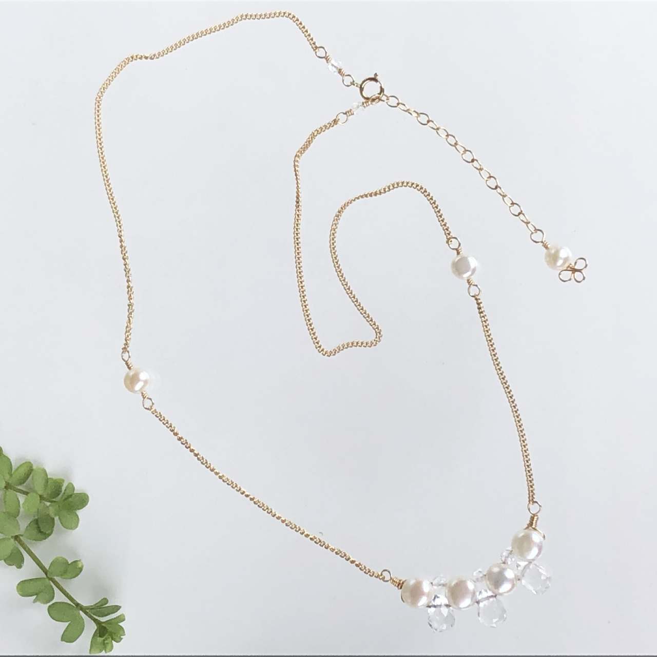 また、ネック部分やアジャスターの先にも淡水パールをつけているので後ろ姿もおしゃれなネックレスは、色々な装いにも合わせることができます。