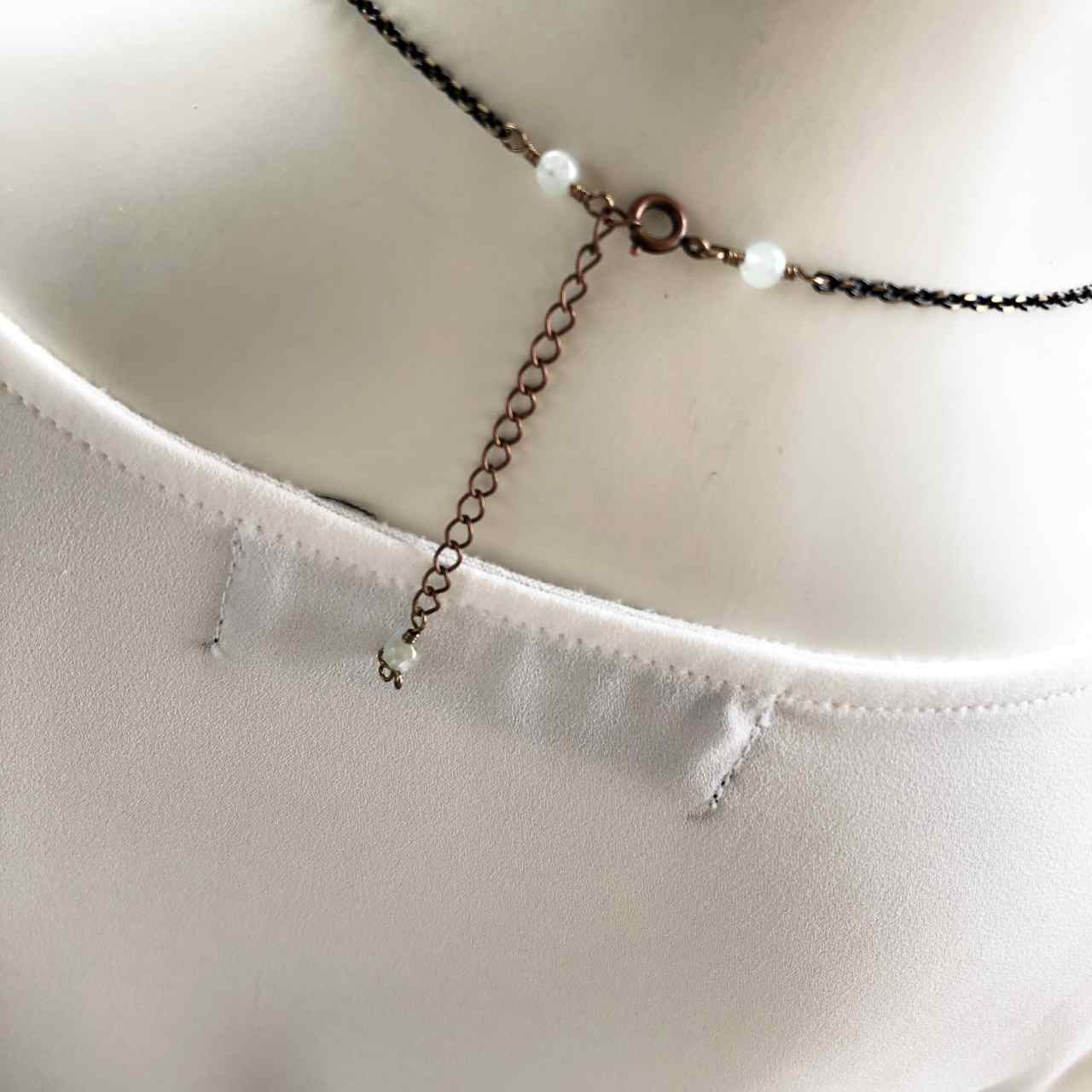 ネック部分はアクアマリンを合わせ、アジャスターの先にもスモーキークオーツをつけているので後ろ姿もおしゃれです。