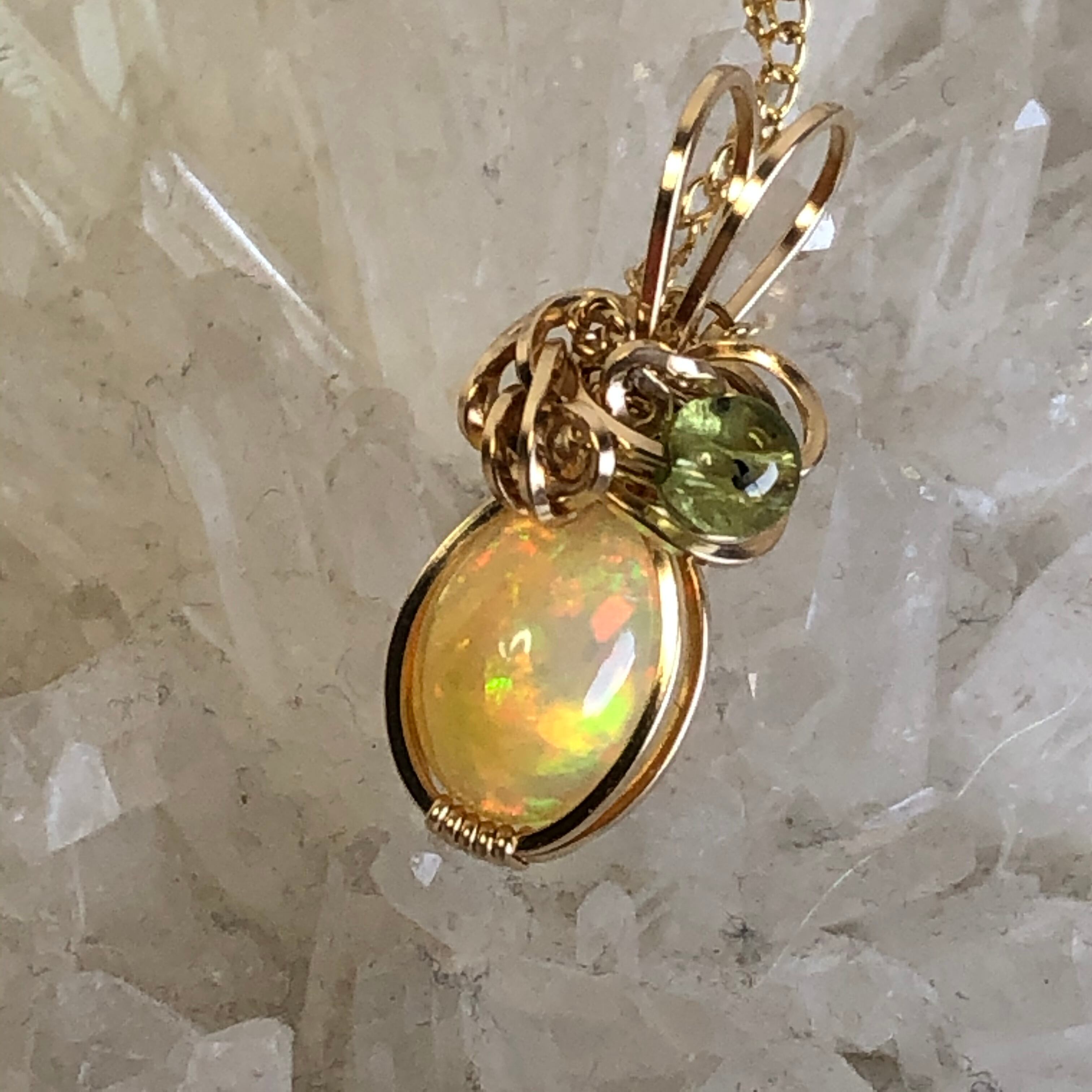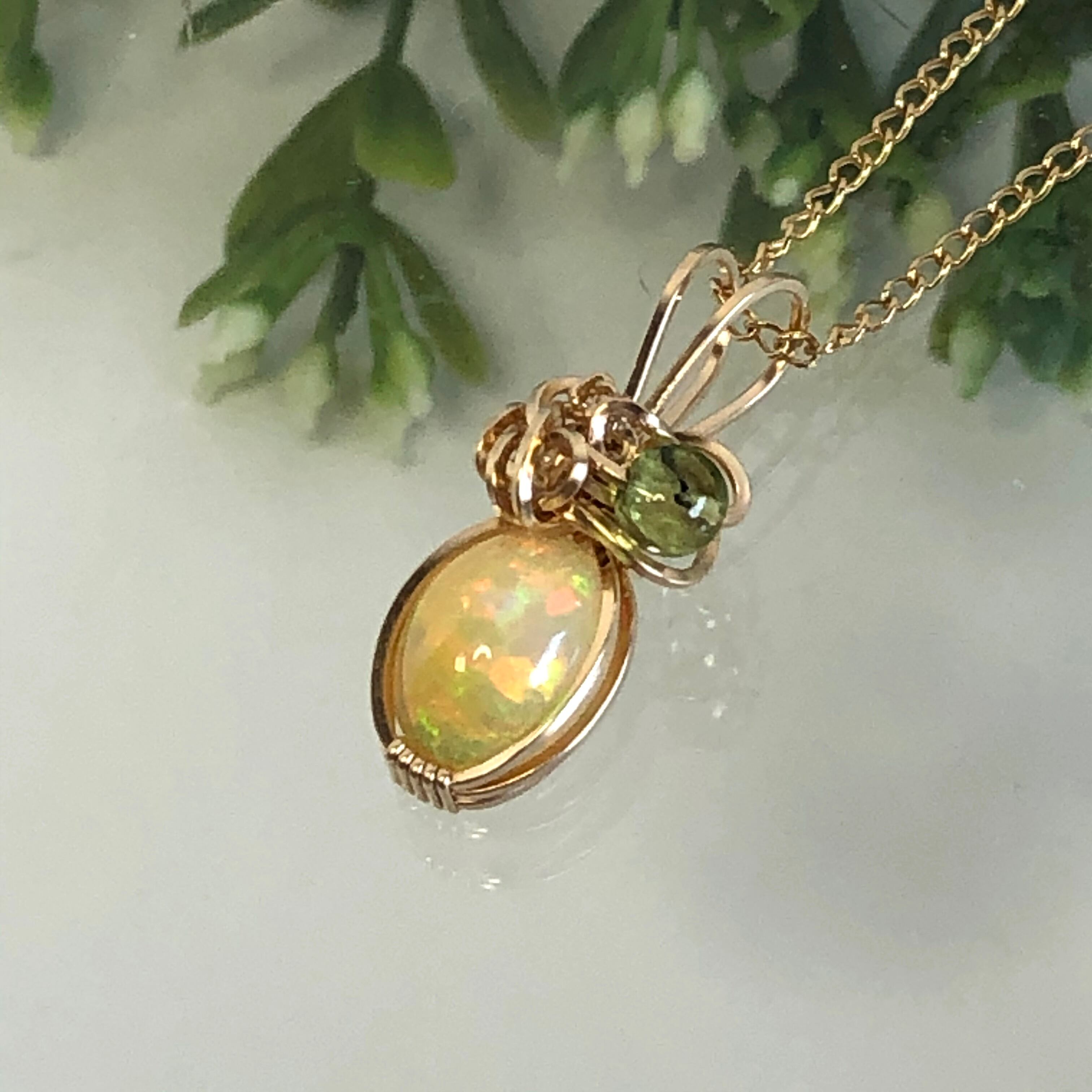 そんな華やかなオパールを、14Kgfのスクエアワイヤー(断面が四角いワイヤー)でペンダントトップにしました☆